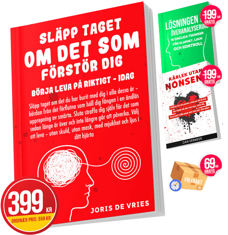 Detta erbjudande går snart ut! Beställ nu "Släpp taget om det som förstör dig" 📖 med de kostnadsfria bonus e-böckerna 🎁 "Kärlek utan nonsens" och "Lösningen på överanalysering" för endast 399 kr 💰, innan priset stiger tillbaka till 599 kr ⚠️